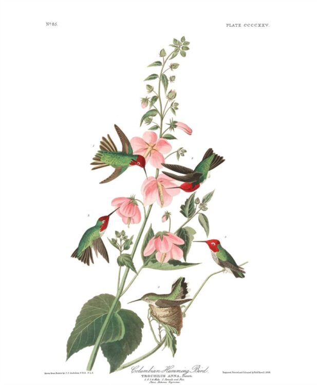 The Columbian Hummingbird Print from John James Audubon’s Birds of America Series, printed between 1827 and 1838.