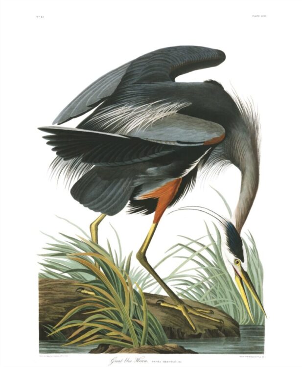 The Great Blue Heron Print from John James Audubon’s Birds of America Series, printed between 1827 and 1838.