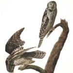 The Hawk Owl Print from John James Audubon’s Birds of America Series, printed between 1827 and 1838.