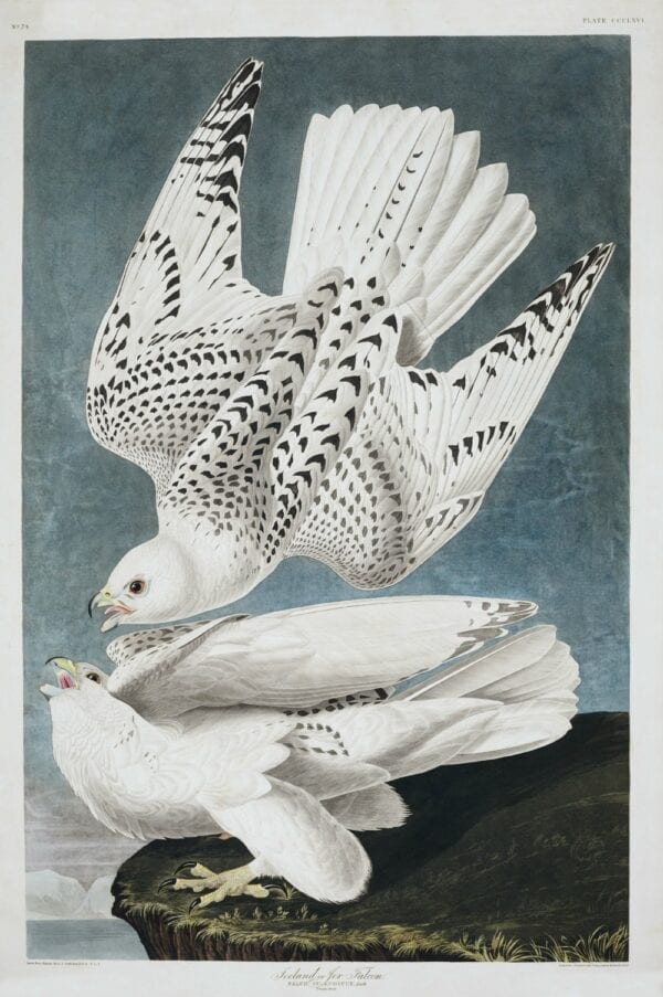 The Icelandic Falcon Print from John James Audubon’s Birds of America Series, printed between 1827 and 1838.