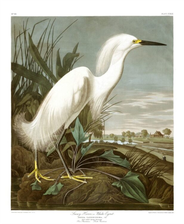 The Snowy Heron Print from John James Audubon’s Birds of America Series, printed between 1827 and 1838.