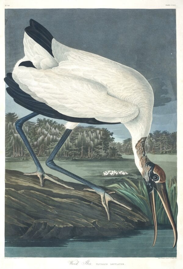 The Wood Ibis Print from John James Audubon’s Birds of America Series, printed between 1827 and 1838.