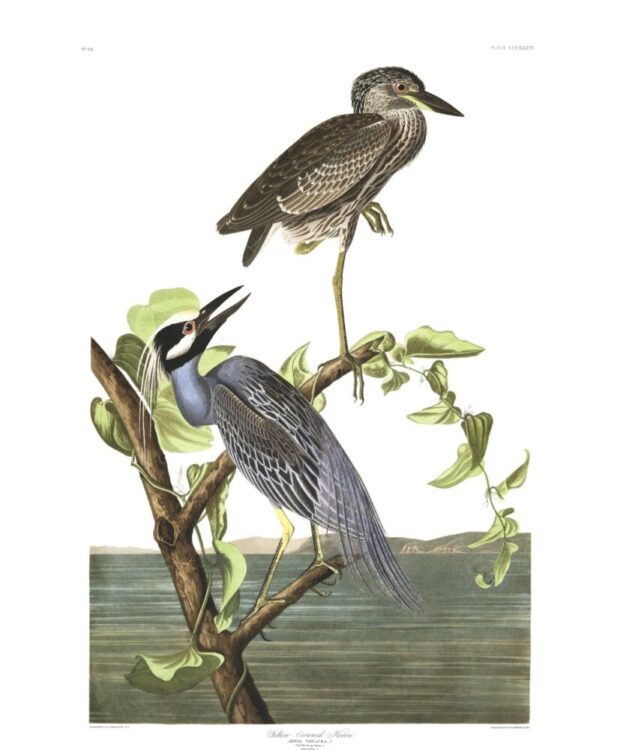 The Yellow-Crowned Heron Print from John James Audubon’s Birds of America Series, printed between 1827 and 1838.
