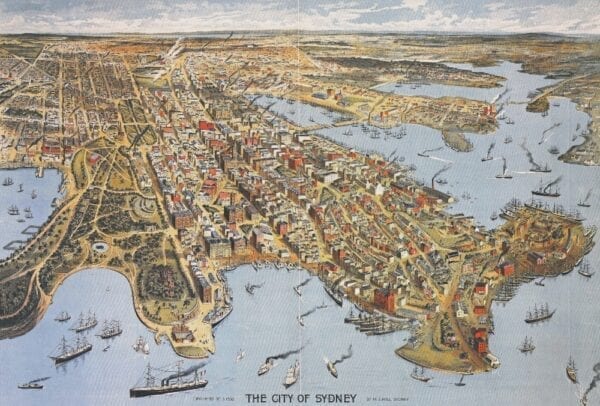 Hill’s Vintage Birdseye View of Sydney, Australia from 1888.