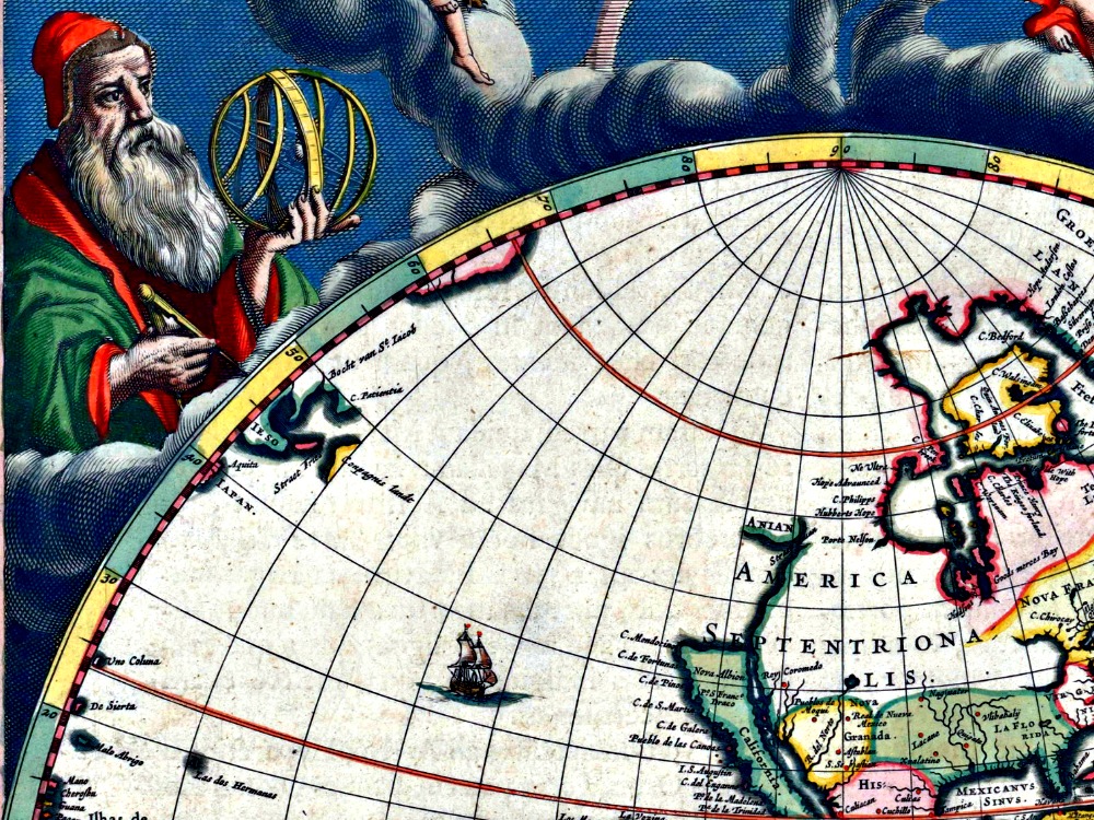 Blaeu’s 1664 Map of the World is one of the earliest world maps to incorporate the discoveries of Tasman in Australia and New Zealand. Outside the twin hemispheres at the top are celestial figures seated amid clouds: below are representations of the four seasons with each allegorical figure seated in an appropriate chariot quaintly drawn by pairs of beasts and birds.