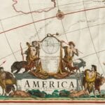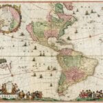 The spectacular Map of America by Frederick de Wit, from 1670. A spectacular and very detailed wall map of the new world. Here in its final state with completely updated geographic rendering of the original colonies, at a time of rapid discoveries and settlements inland.