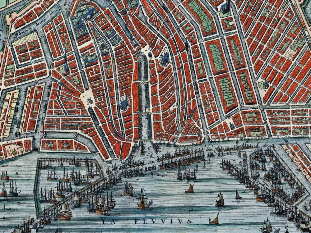 Blaeu’s Map of Amsterdam from 1649. One of the most famous and beautiful maps of Amsterdam in the Golden Age, showing the planned expansion of the city walls.