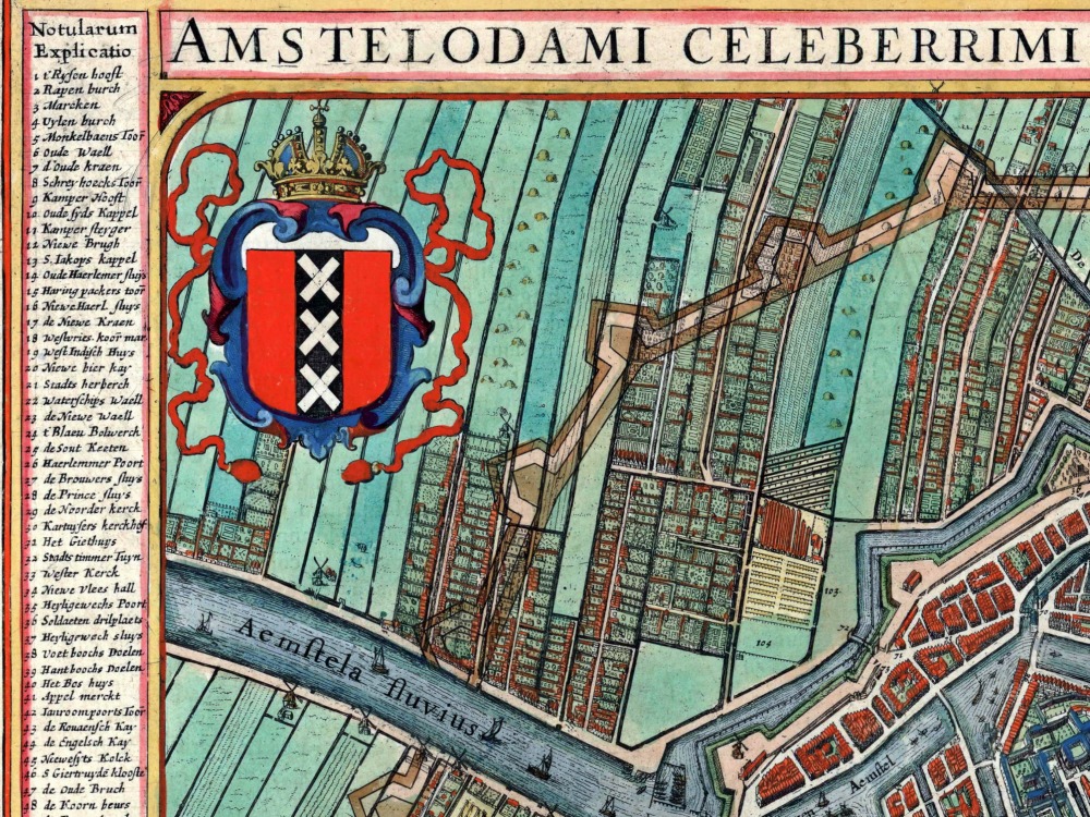 Blaeu’s Map of Amsterdam from 1649. One of the most famous and beautiful maps of Amsterdam in the Golden Age, showing the planned expansion of the city walls.