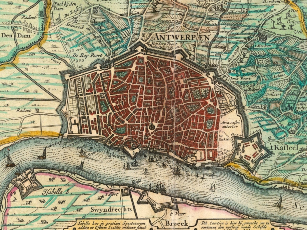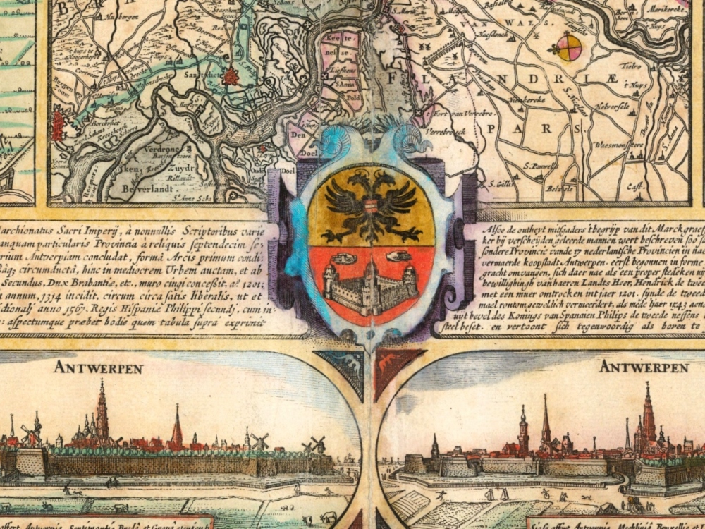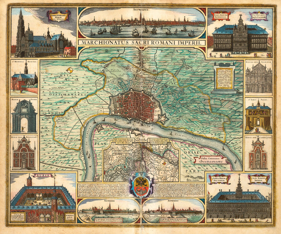 One of the most beautiful maps of Antwerp, glorifying the beauty and the richness of the city.