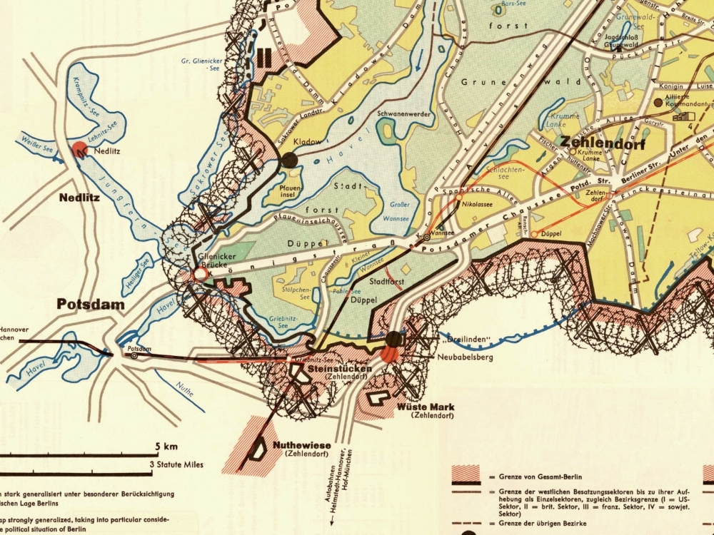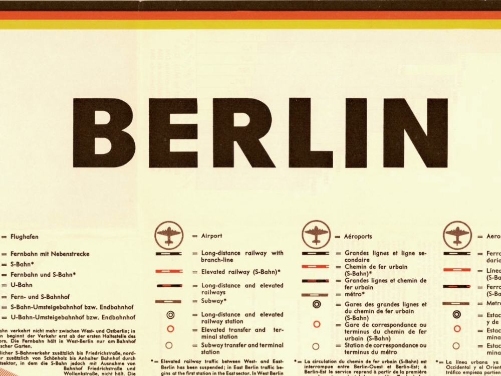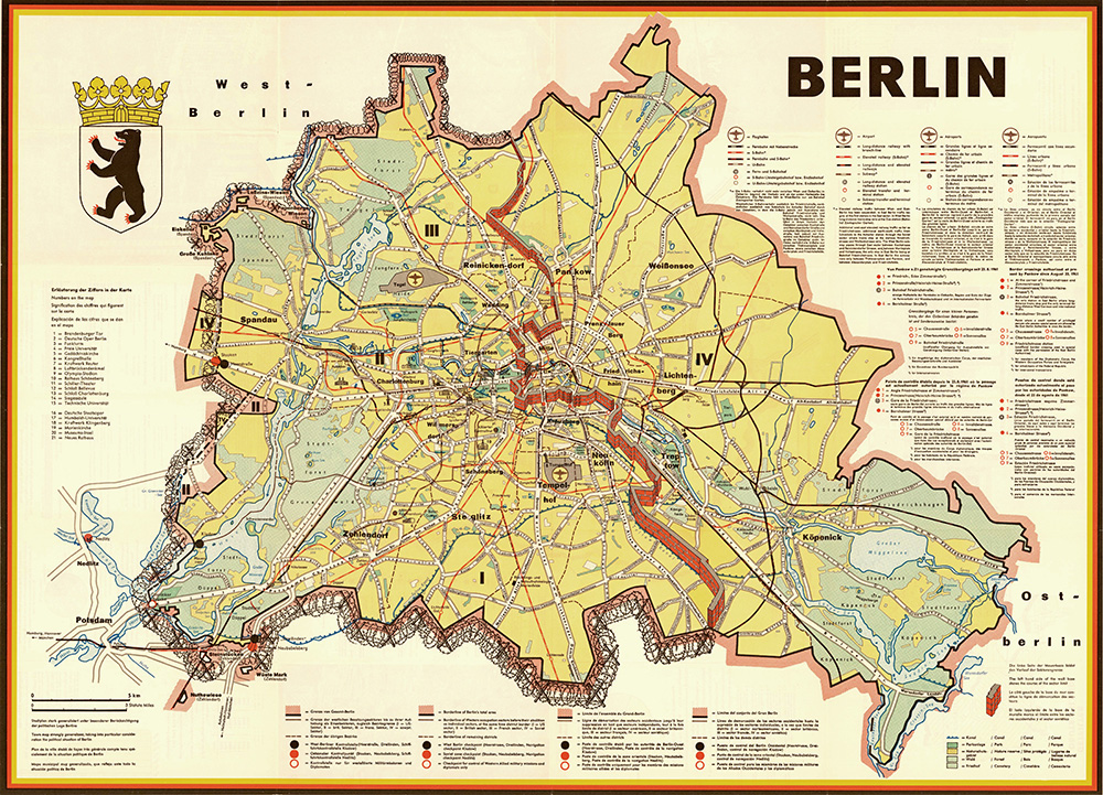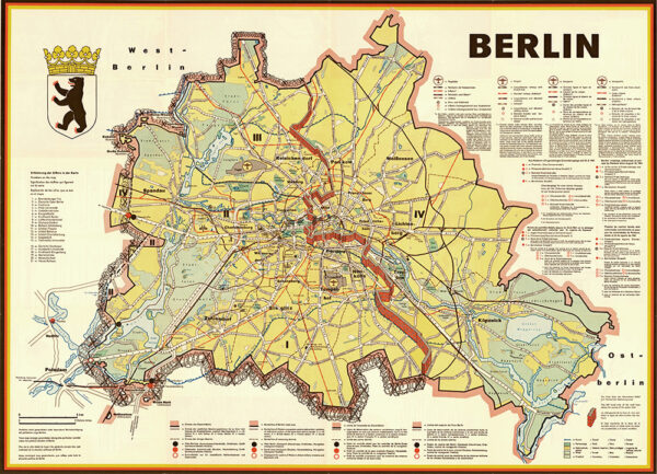 1962 Map of Berlin depicting the then recently built Berlin Wall dividing the city into East and West. Berlin’s coat of arms is shown in the upper left corner.