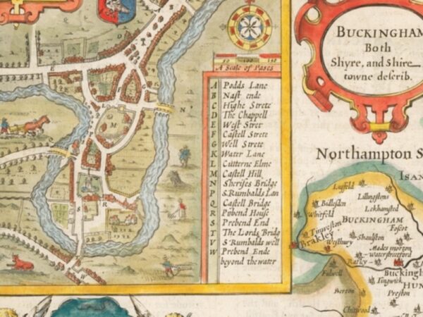 Vintage Map of Buckinghamshire from John Speed’s Theatre of the Empire of Great Britaine 1676, to this day one of the most important Atlases ever produced.