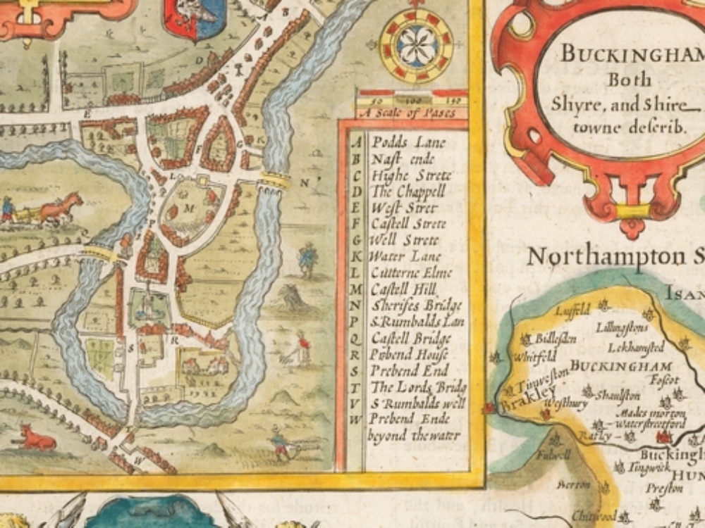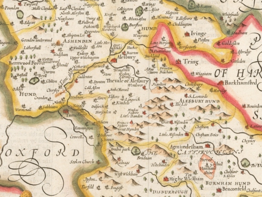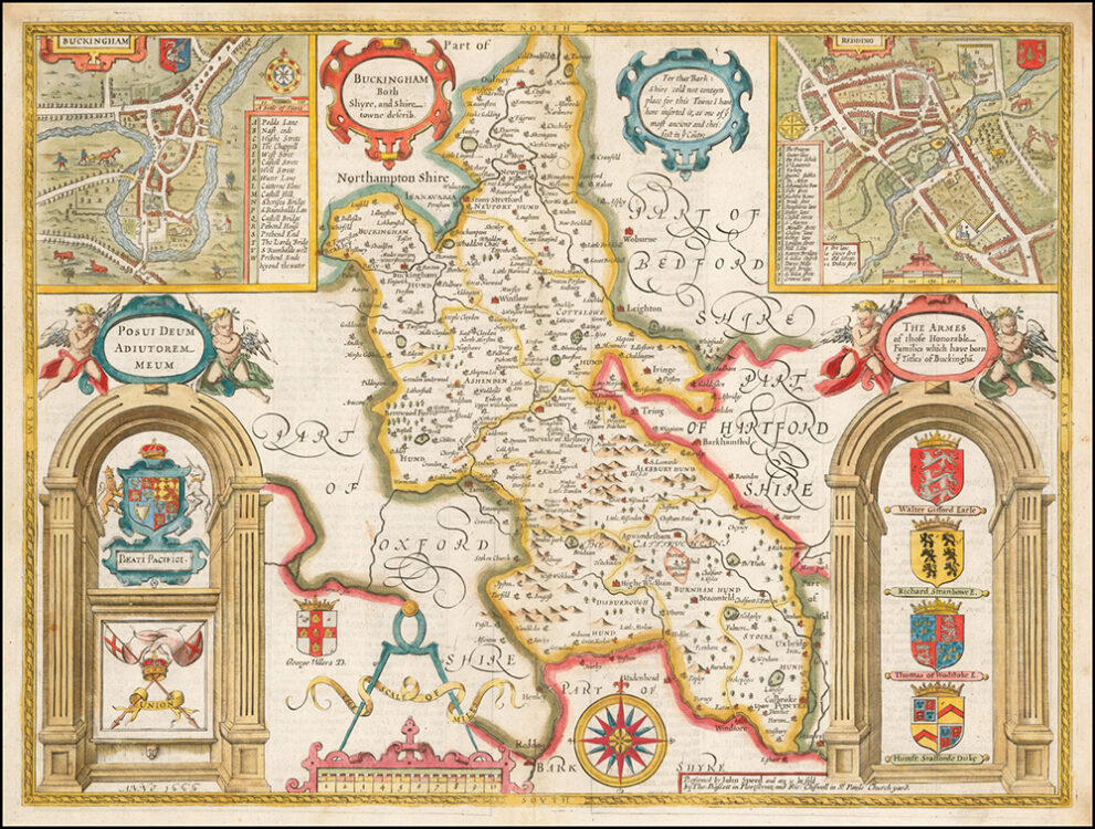 Vintage Map of Buckinghamshire from John Speed’s Theatre of the Empire of Great Britaine 1676, to this day one of the most important Atlases ever produced.