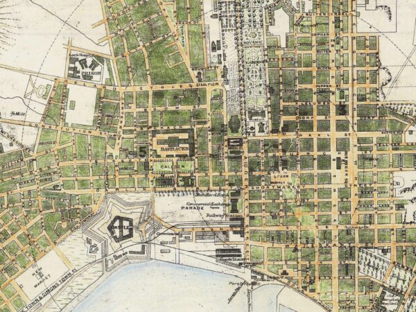 T.W. Cairncross’ Map of Cape Town, South Africa from 1884. The Map depicts the rapidly expanding city under the shadow of Table Mountain.