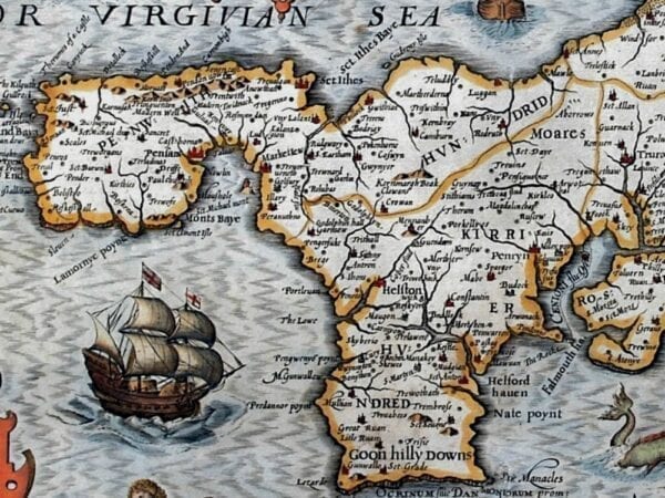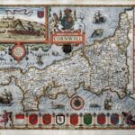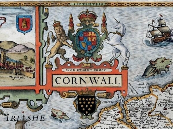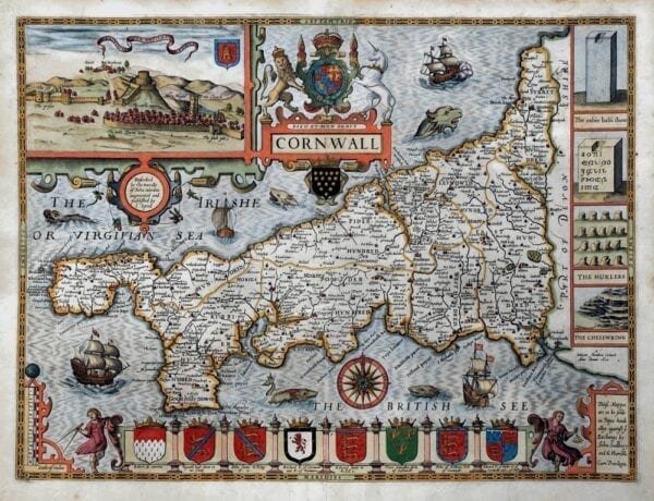 John Speed’s Medieval Map of Cornwall from 1611. The Map first appeared in Speed’s Theatre of the Empire of Great Britaine is one of the worlds great cartographic treasures. Published in 1611/12, it marked the first time that comprehensive plans of English and Welsh counties and towns were made available in print.