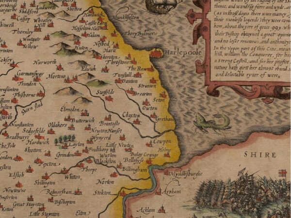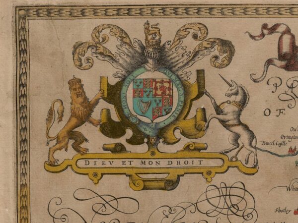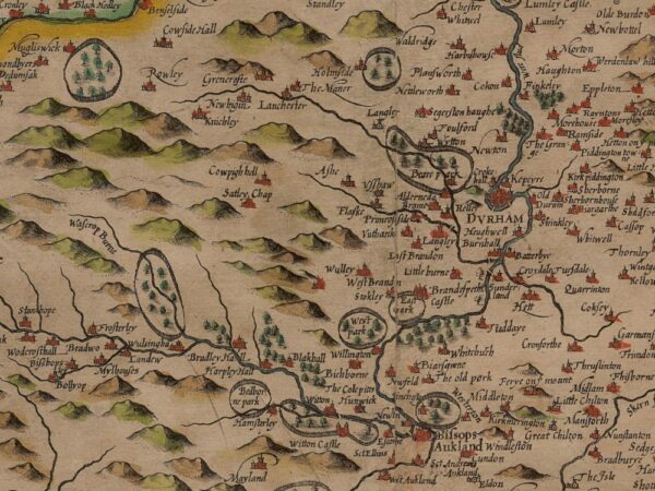 Vintage Map of Durham from John Speed’s Theatre of the Empire of Great Britaine 1676, to this day one of the most important Atlases ever produced.