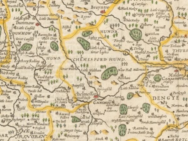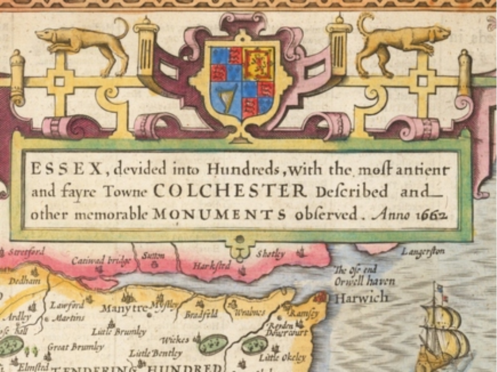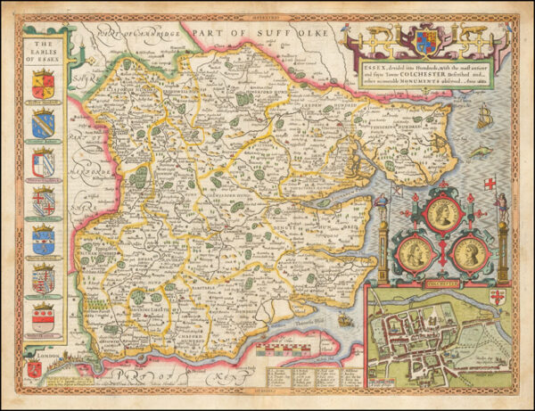 Vintage Map of Essex from John Speed’s Theatre of the Empire of Great Britaine 1676, to this day one of the most important Atlases ever produced.