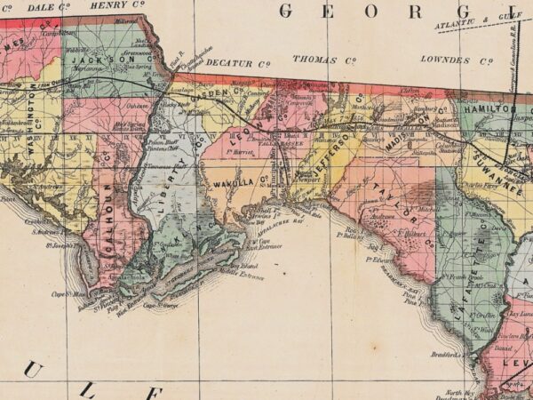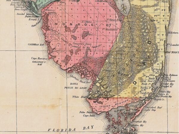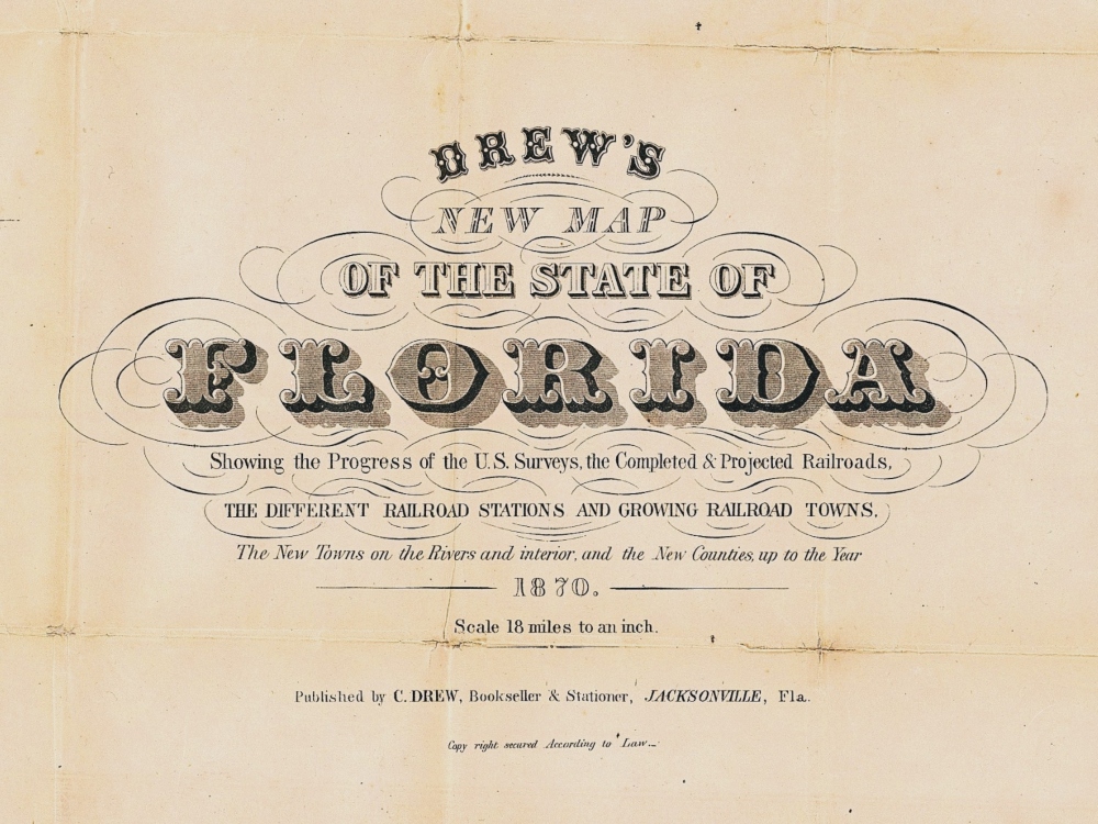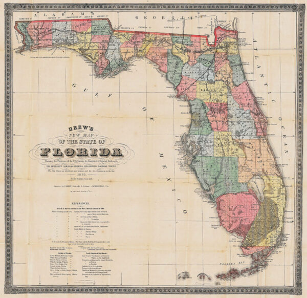 Drew’s Map of Florida from 1870. The Map depicts the major towns of the State of Florida as well as the occupied Native American territories at that time.