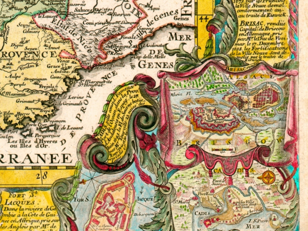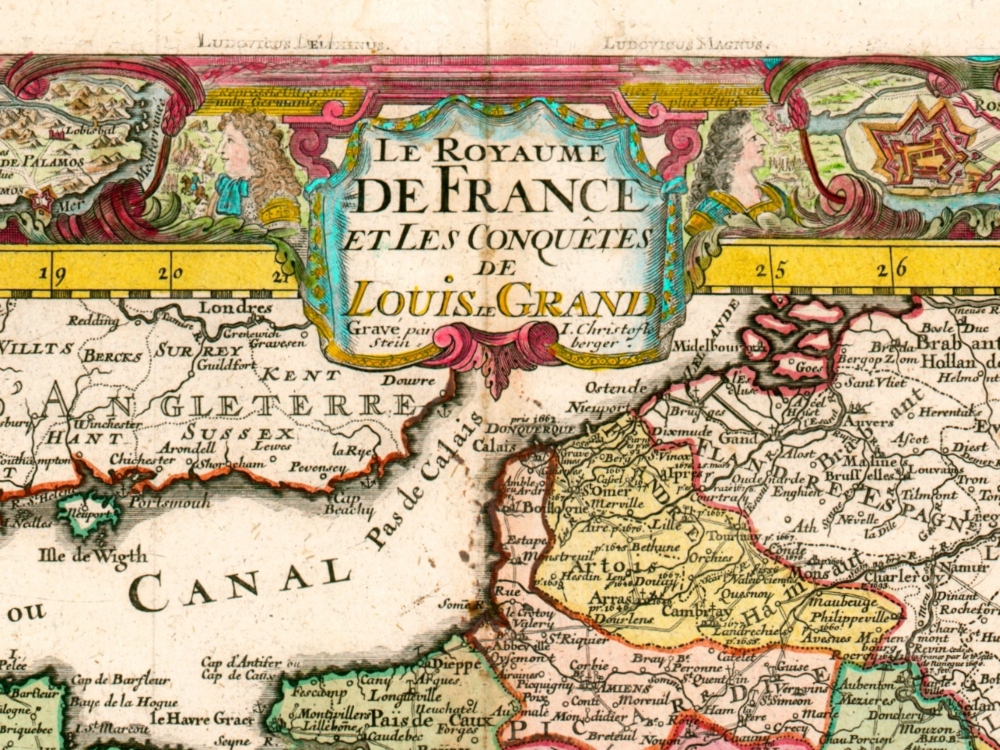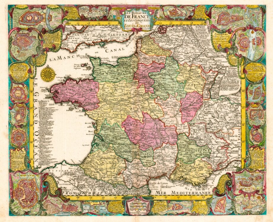 Vintage Map of France from 1760 by Lotter. Lotter’s 1760 Map of France was published to celebrate the conquests of Louis XIV. The map is bordered by 19 city plans of locations that featured prominently in Louis’ campaigns.