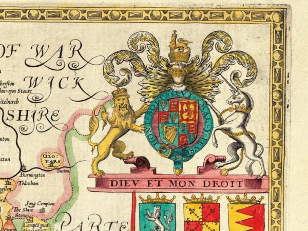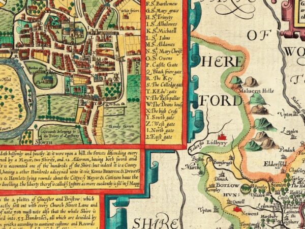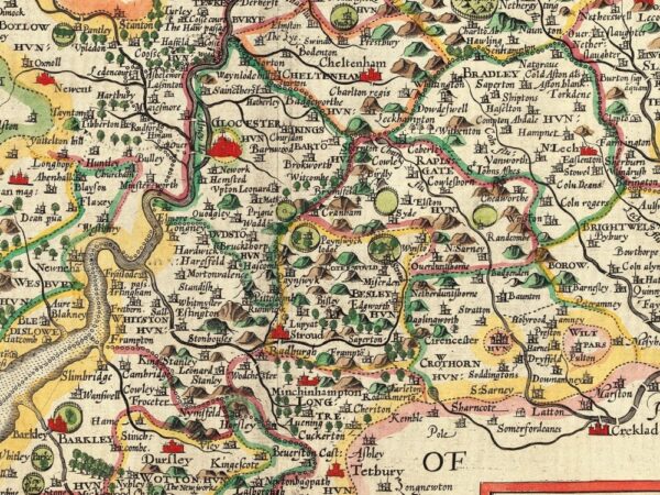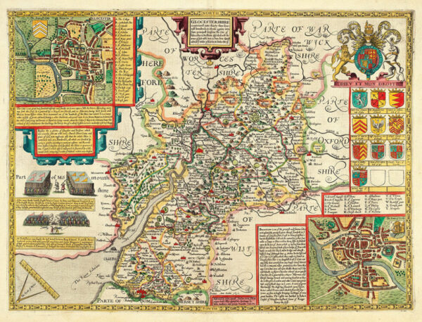 Vintage Map of Gloustershire from John Speed’s Theatre of the Empire of Great Britaine 1676, to this day one of the most important Atlases ever produced.