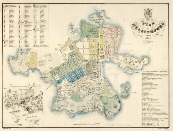Vintage Map of Helsinki from 1837 by F.Tengström & F.Liewendahl.