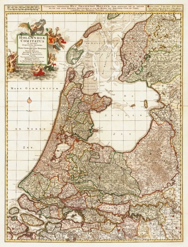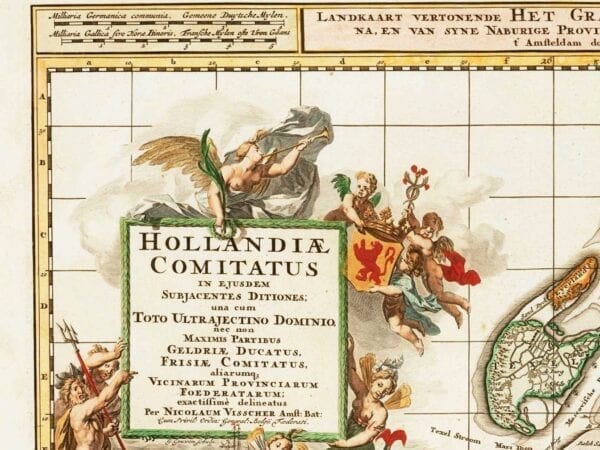 Visscher’s detailed map of Holland, the province in the west of the Netherlands. With a highly decorative title cartouche.