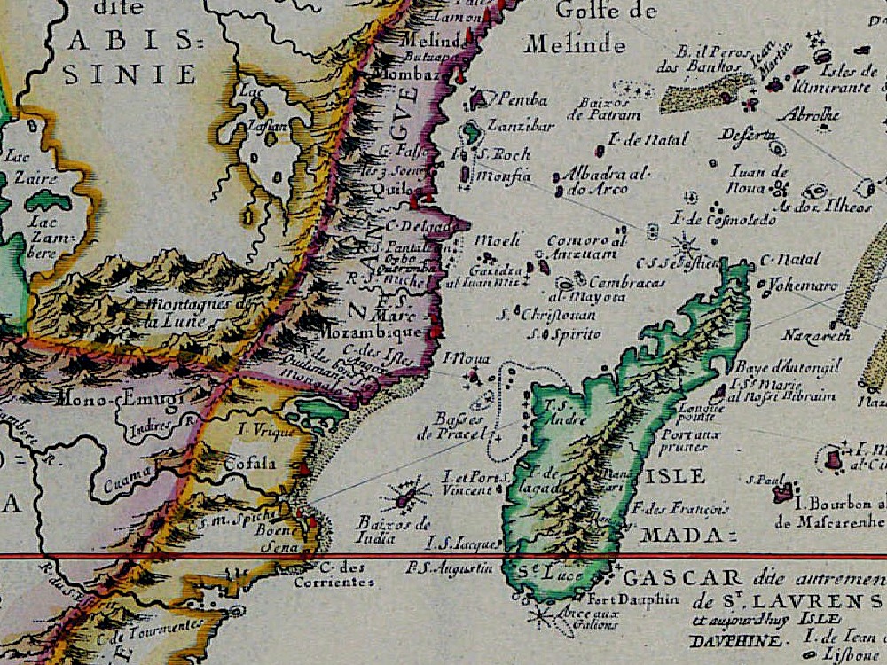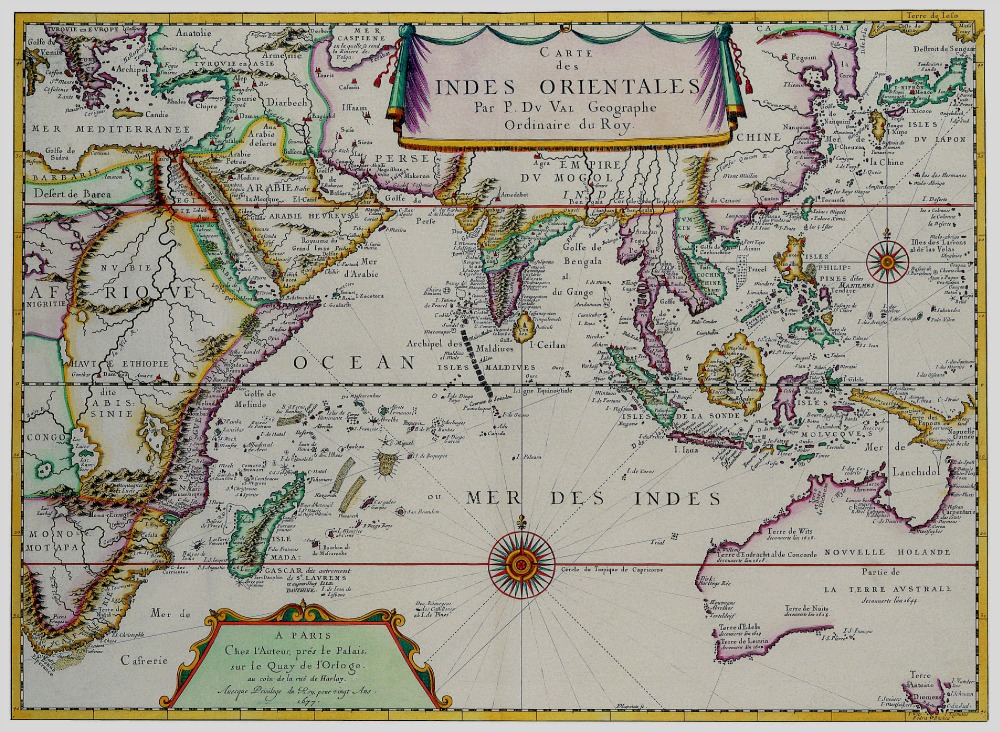 Duval’s stunning map of the Indian Ocean and surrounding territories was published in 1635. It is one of the earliest maps depicting Australia.