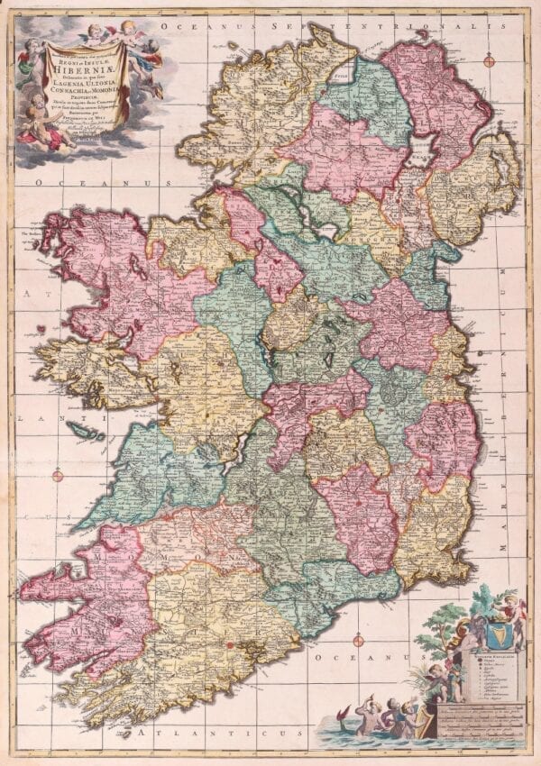 Frederick De Wit’s stunning full colour Map of Ireland from 1662.