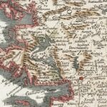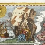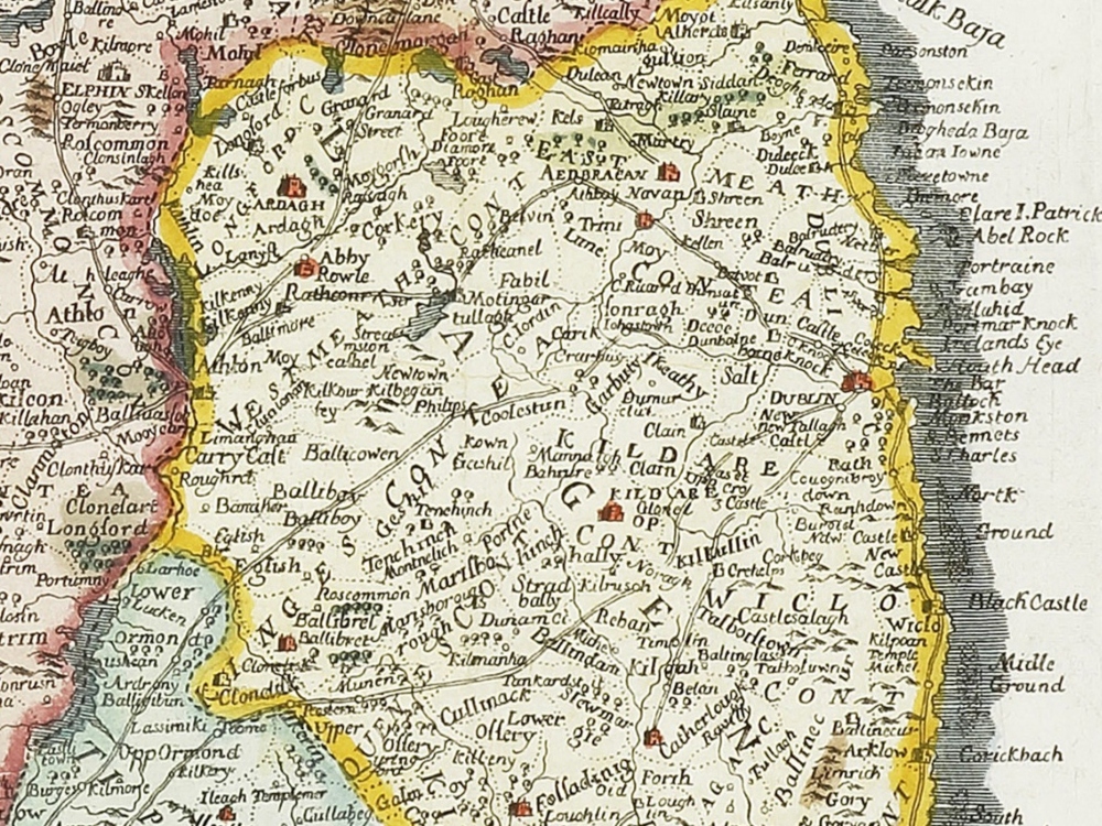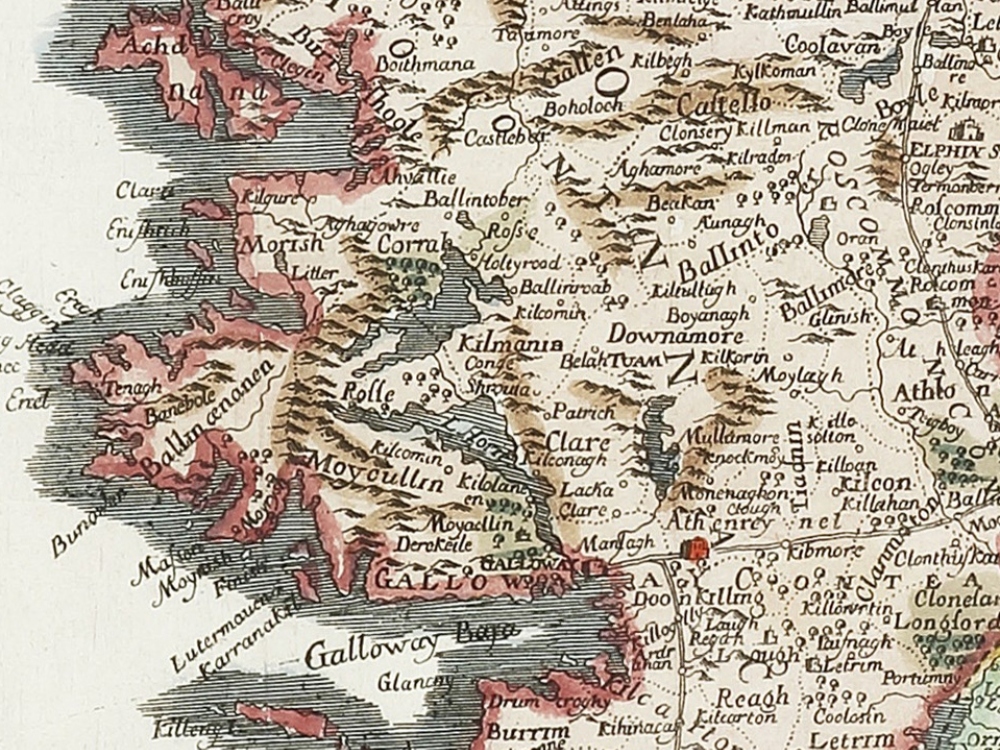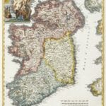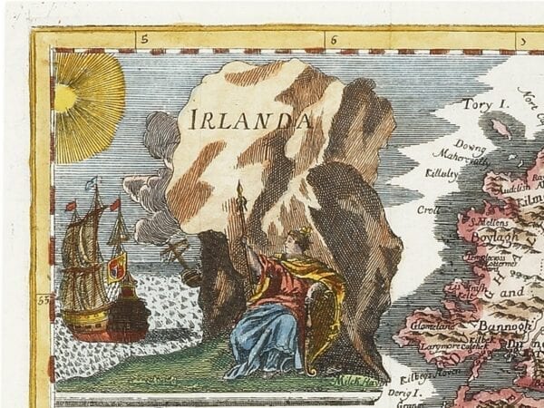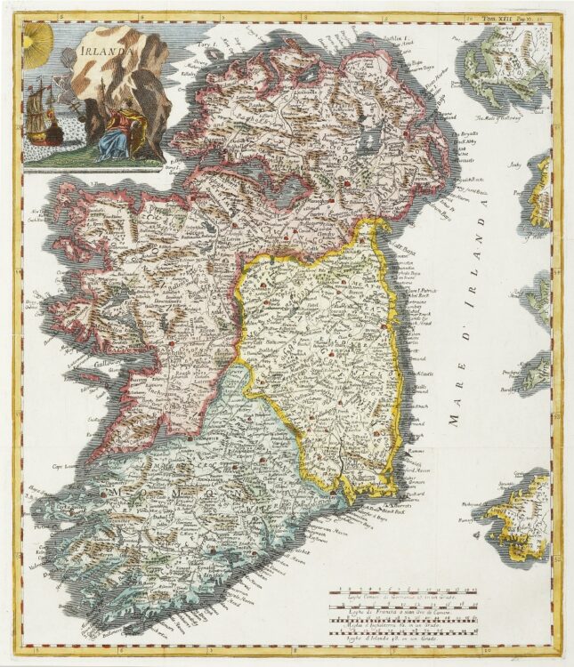 Vintage Map of Ireland in 1743 by Giambattista Albrizzi of Venice. The map is remarkably detailed, showing towns, roads, rivers, mountains, lakes, etc.