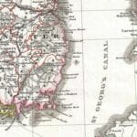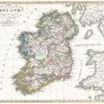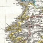 Justus Perthes Map of Ireland shows the island divided into its four provinces: Ulster, Connaught, Leinster and Munster. Shows roads, railroads, local political divisions and some of the surrounding waters and territories in England and Scotland.