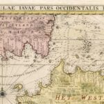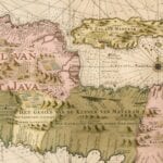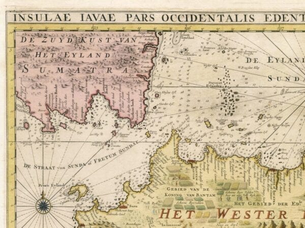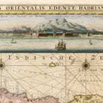 Van Keulen’s spectacular map of Java from 1728. The upper right has a panorama view of Batavia, while the lower left has a plan of the port.