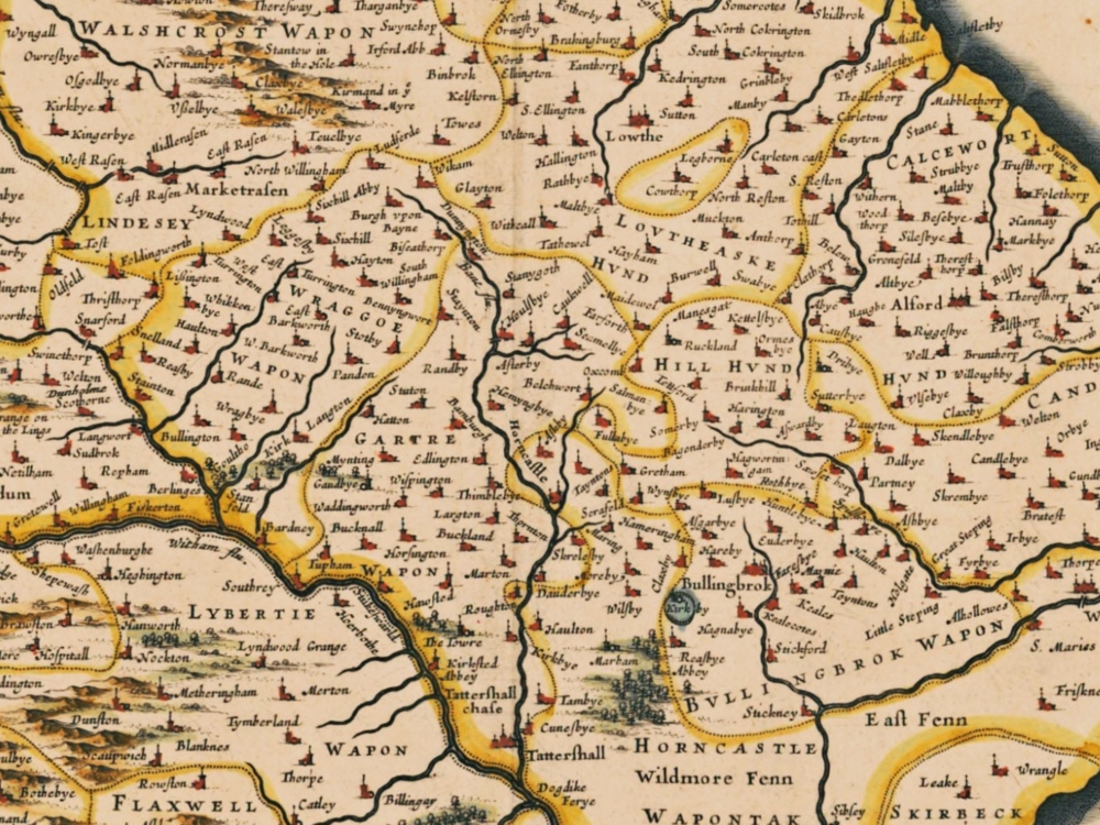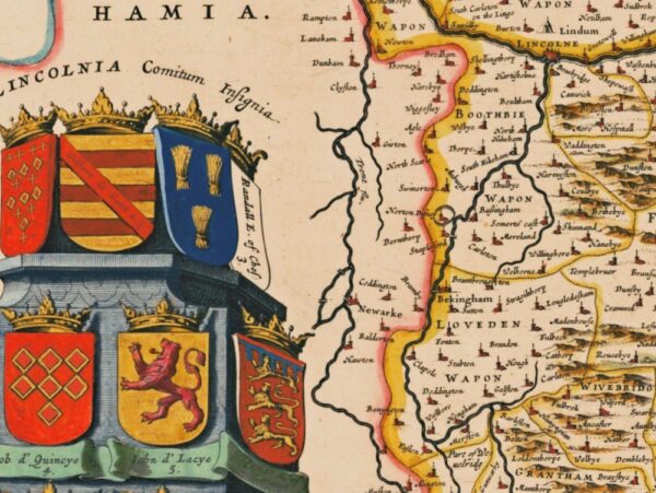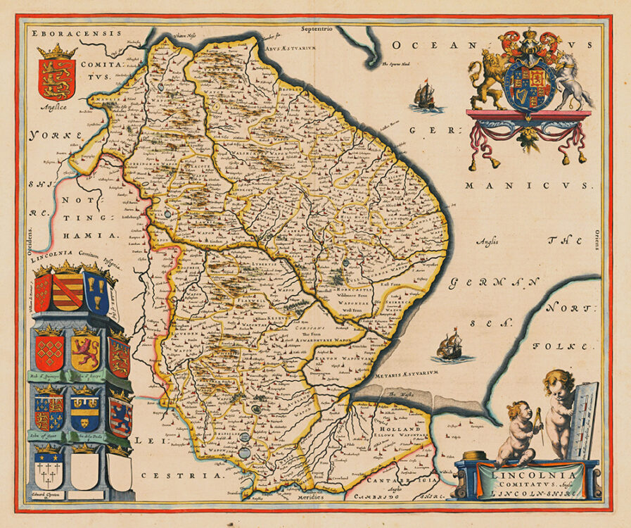 Vintage Map of Linconshire from John Speed’s Theatre of the Empire of Great Britaine 1676, to this day one of the most important Atlases ever produced.