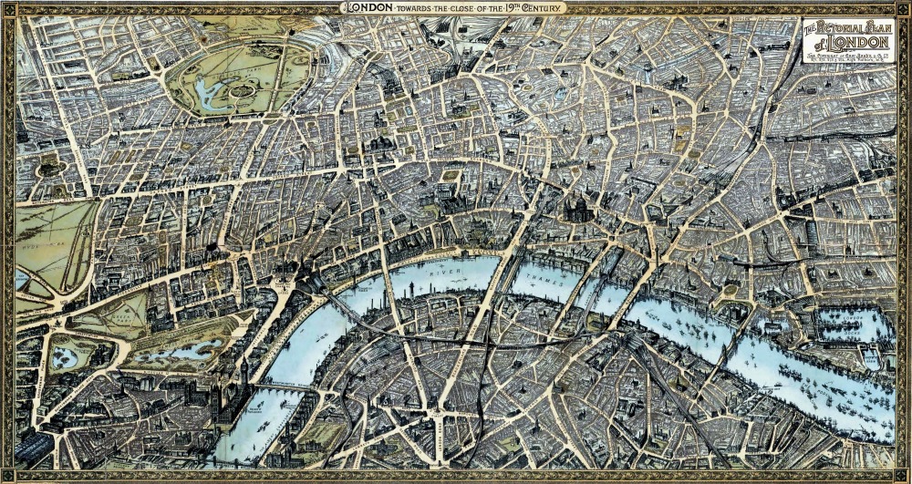 Chas Baker & Co.’s 1897 Map of London, showing Buckingham Palace, the Houses of Parliament and St. Paul’s Cathedral.