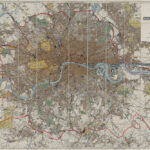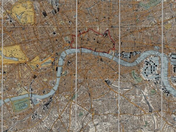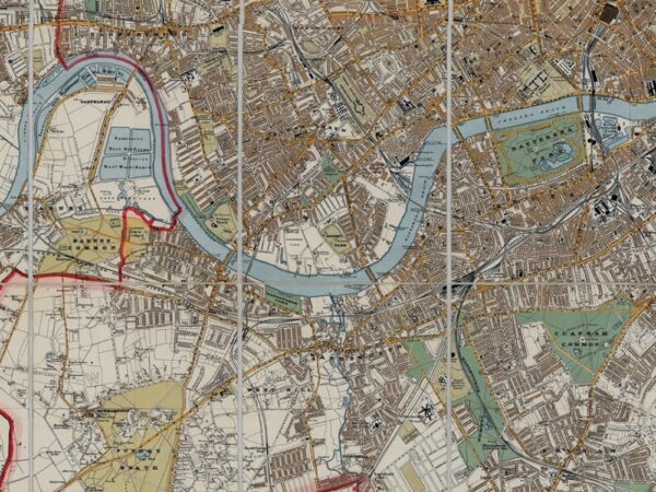 Stanford’s New Map of the County of London from 1905. A spectacular full colour map of London originaly printed on 5 sheets here remastered into one map.