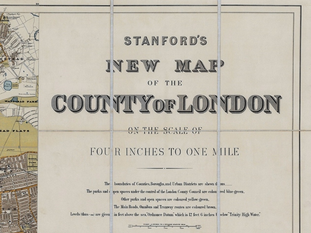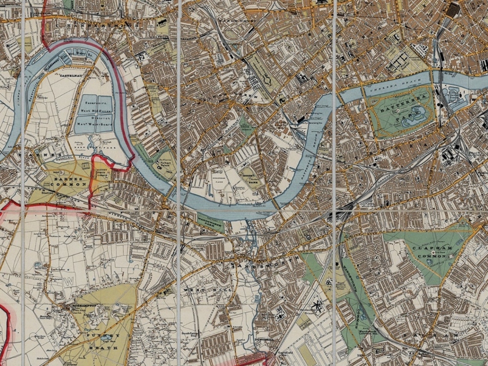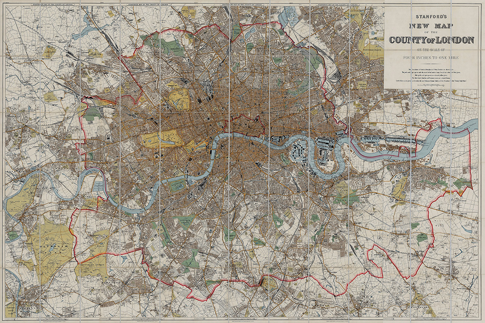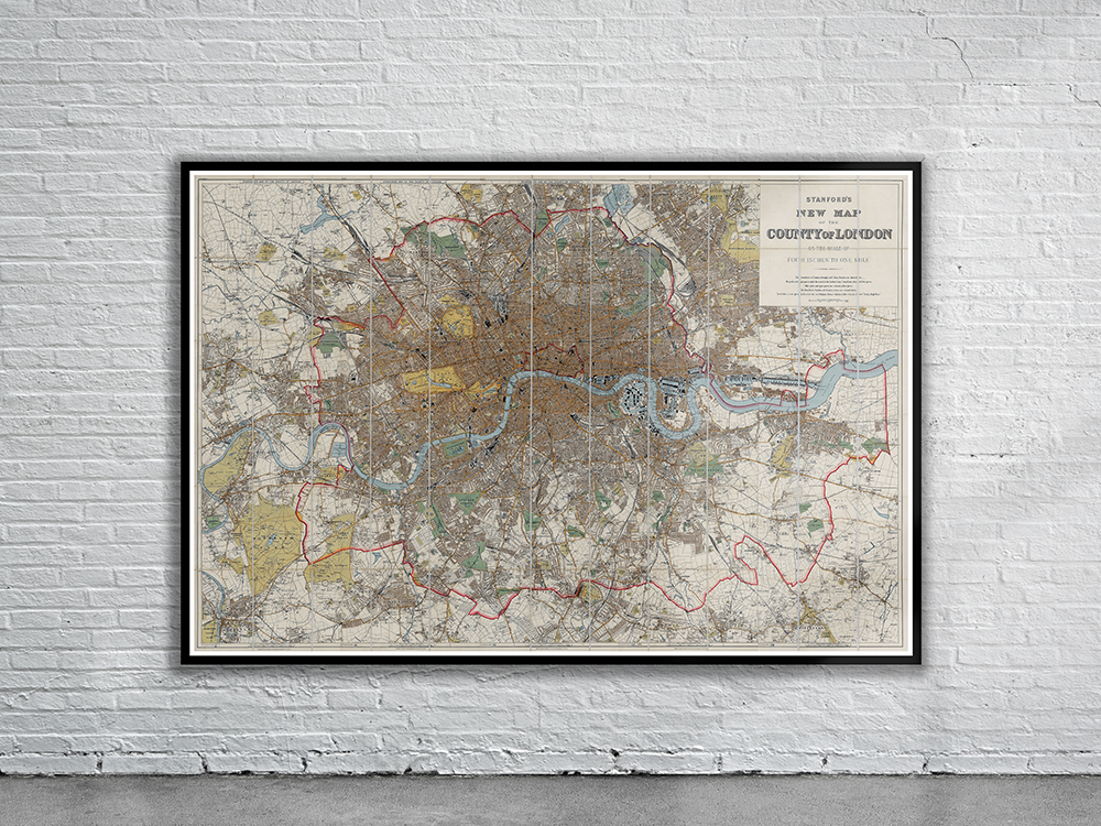 Stanford’s New Map of the County of London from 1905. A spectacular full colour map of London originaly printed on 5 sheets here remastered into one map.