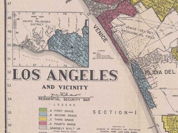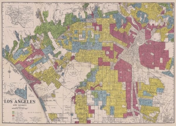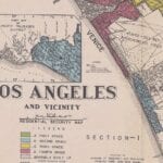 A Spectacular full coloured map of Los Angeles from 1939 showing the streets and various neighbourhoods.
