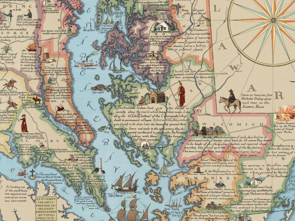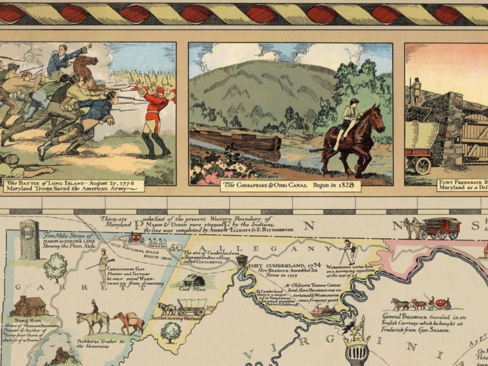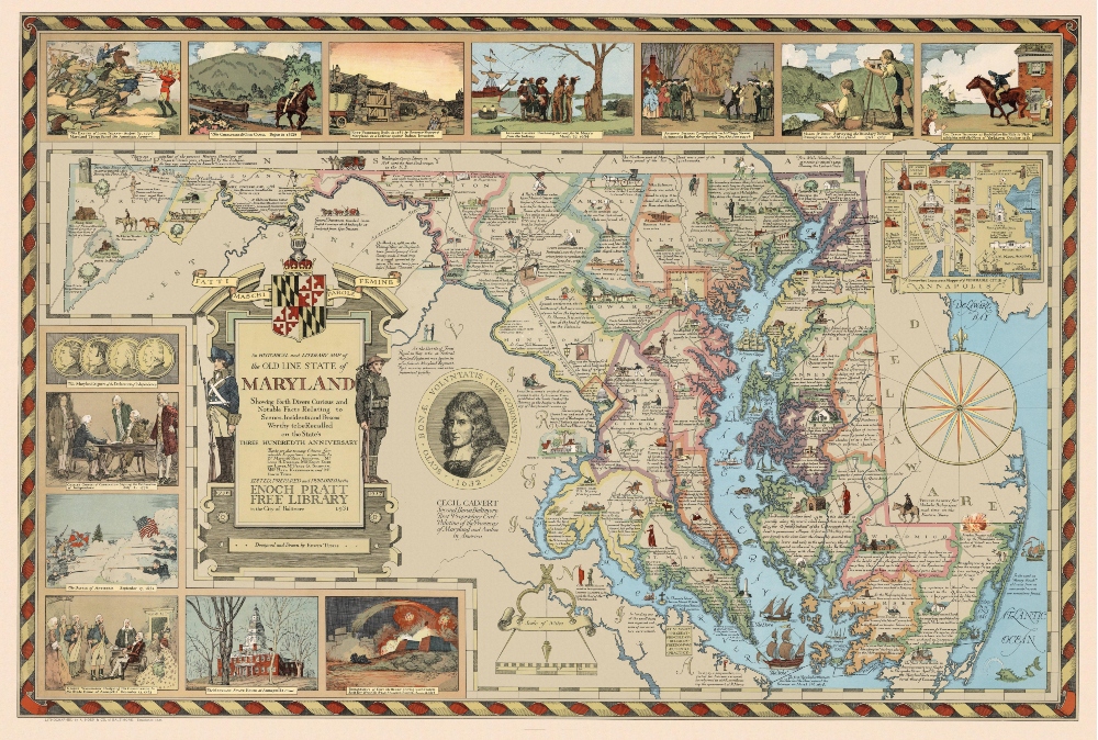 An historical and literary map of the Old Line State of Maryland from 1931.