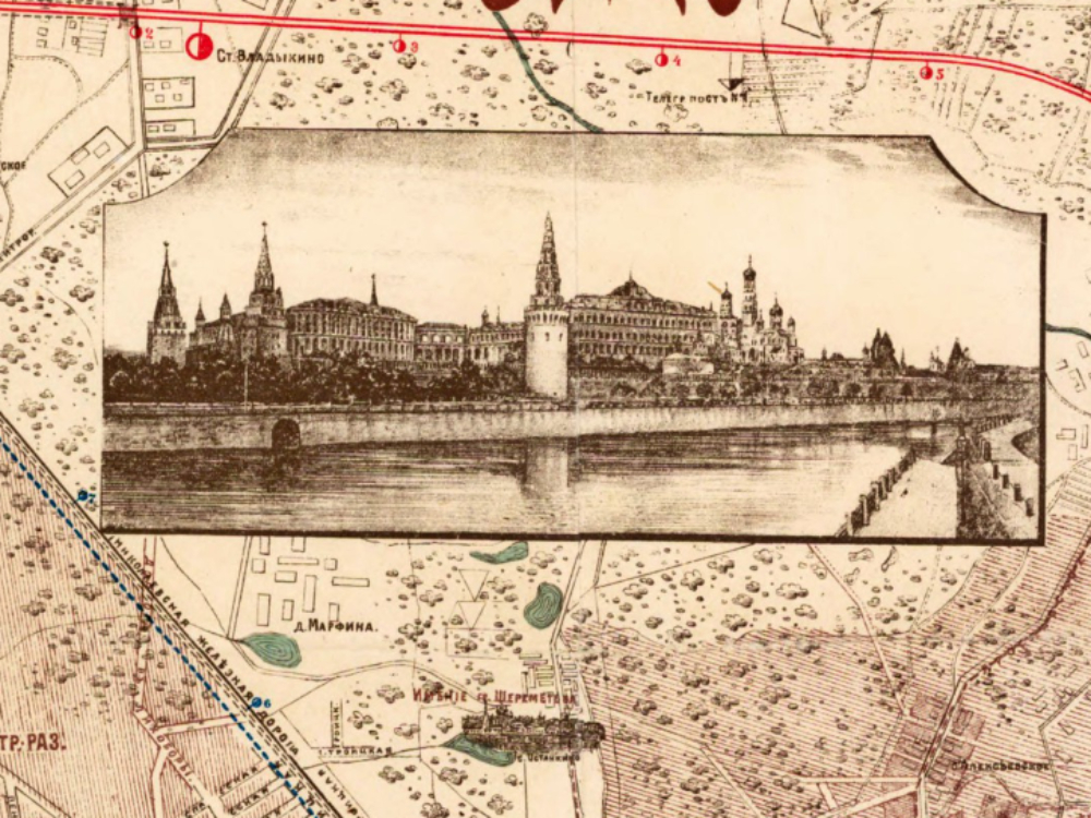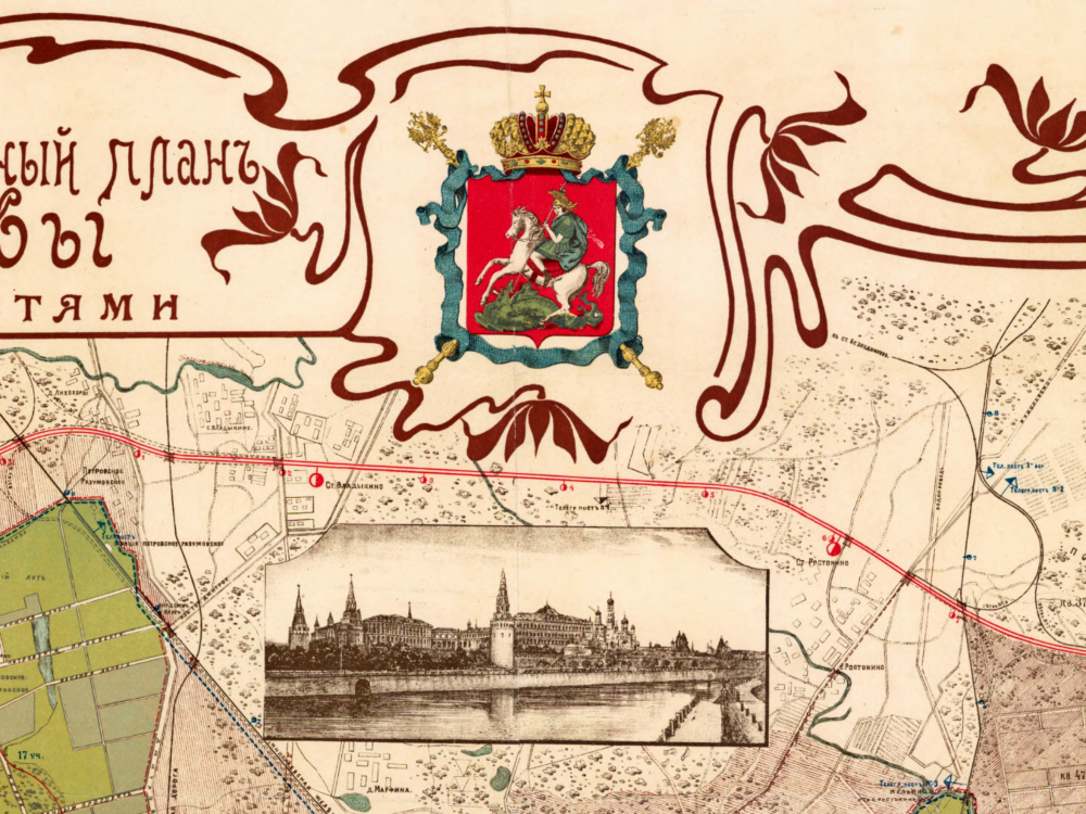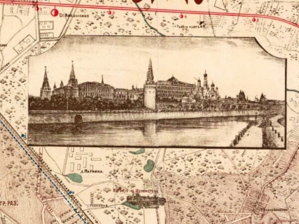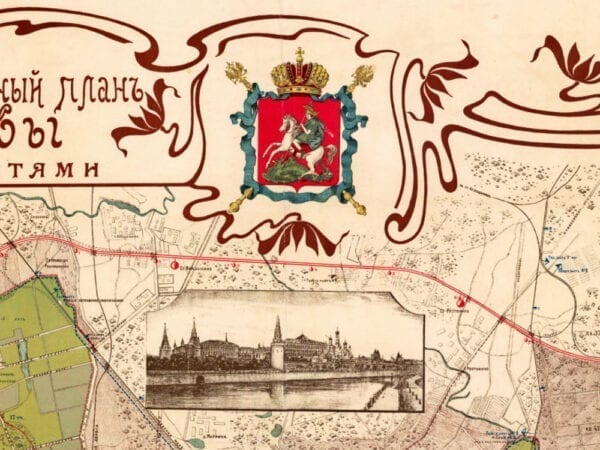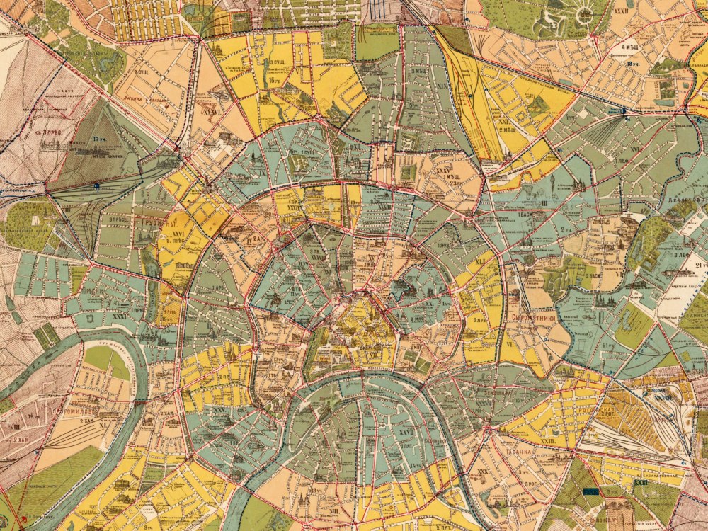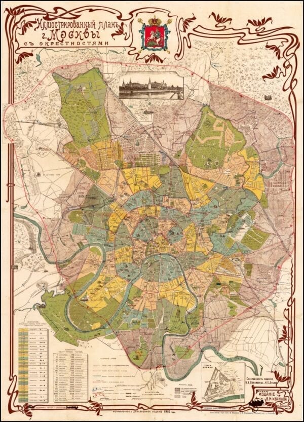 Vintage Map of Moscow 1910. A stunning map of the city of Moscow, Russia at the Czarist Period immediately preceding the Russian Revolution of 1917.