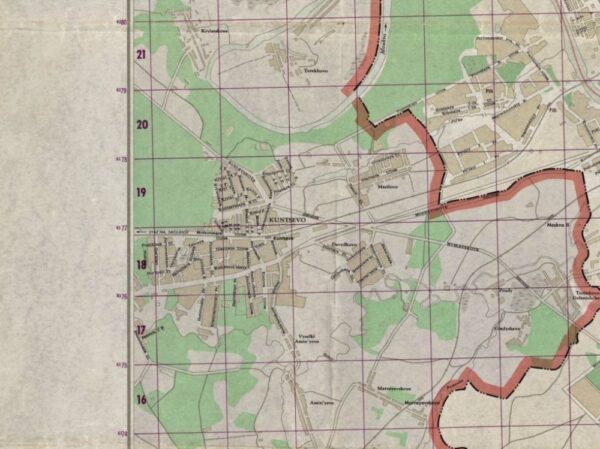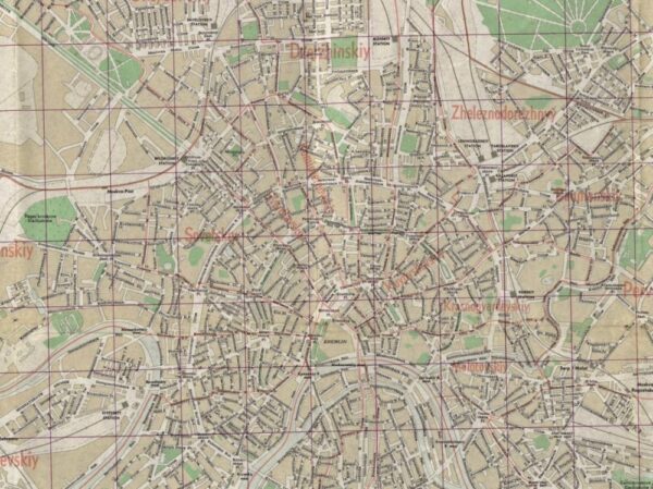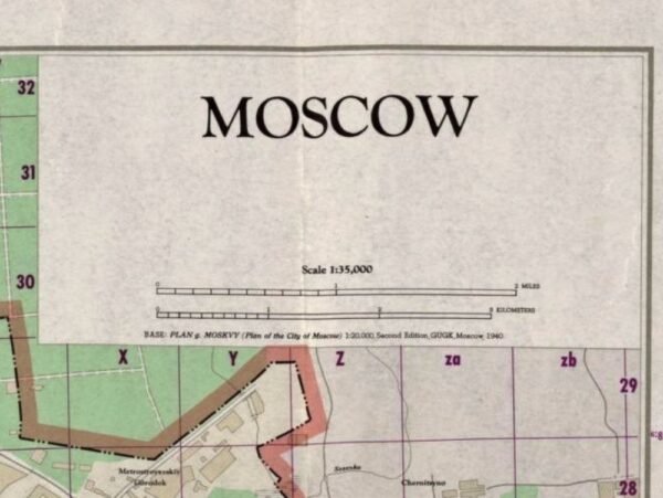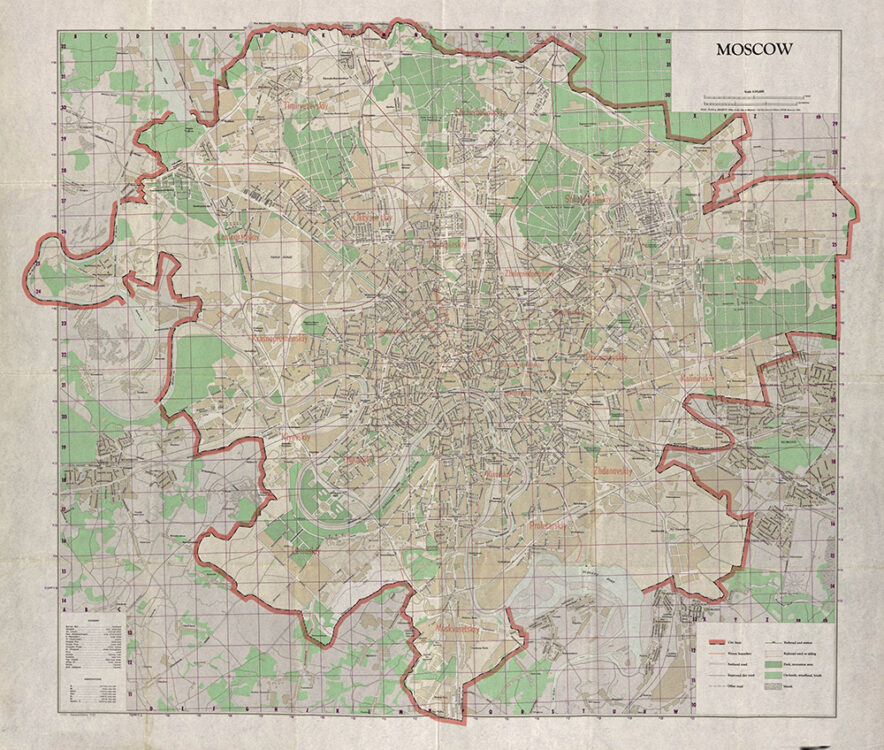A vintage Cold-War era map of Moscow drawn by the Central Intelligence Agency in the U.S. in 1957.