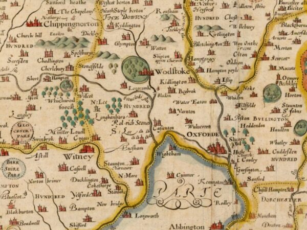 Vintage Map of Oxfordshire from John Speed’s Theatre of the Empire of Great Britaine 1676, to this day one of the most important Atlases ever produced.