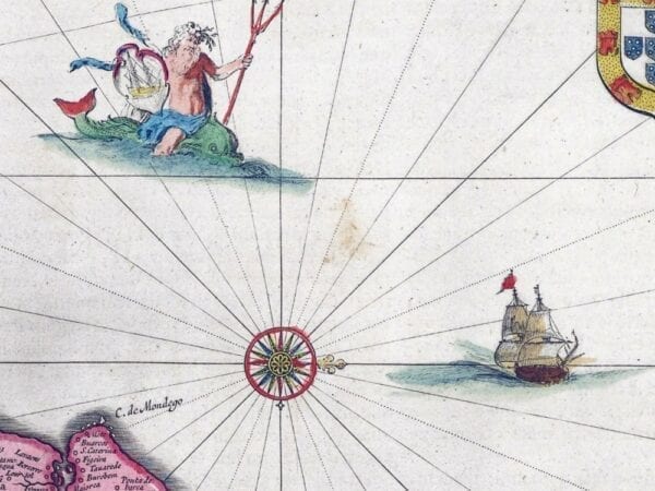 Blaeu’s 1665 Map of Portugal with the North orientated to the right.