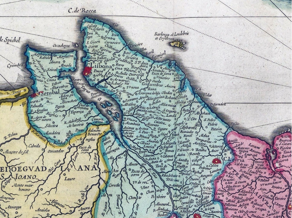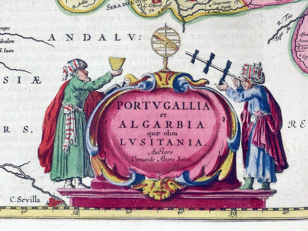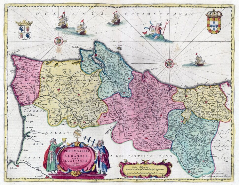 Blaeu’s 1665 Map of Portugal with the North orientated to the right.