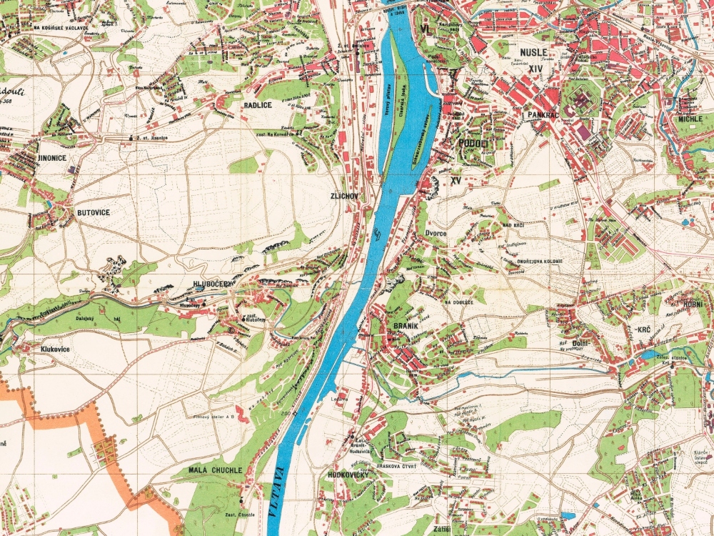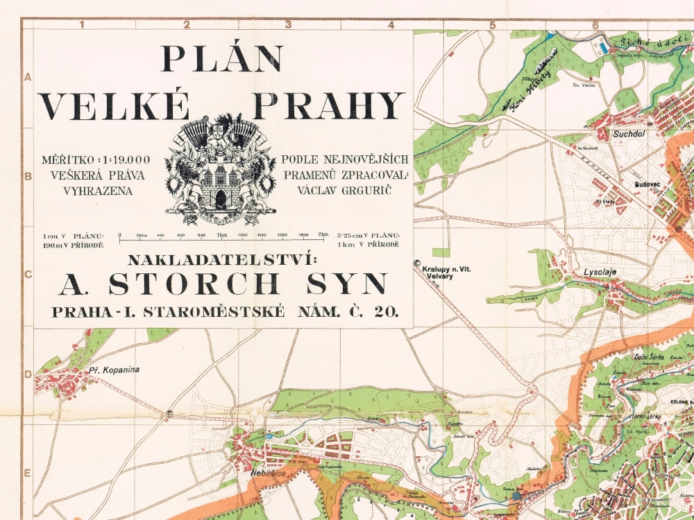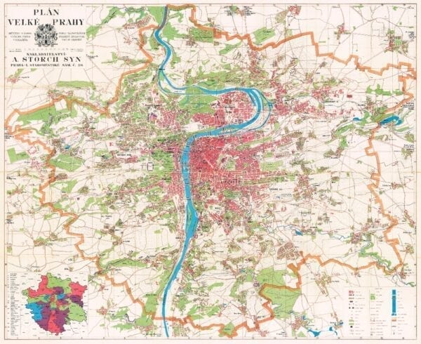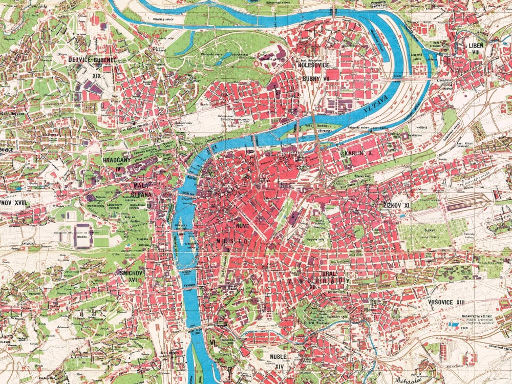A stunning full colour map of the City of Prague from 1939.