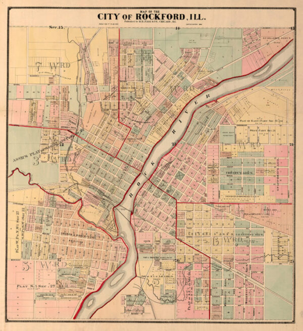 Vintage Map of Rockford, IL from 1886 originally published by H.R. Page.