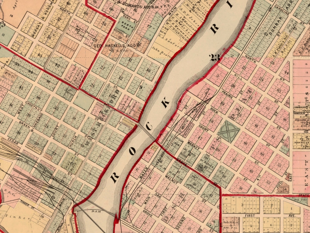 Vintage Map of Rockford, IL from 1886 originally published by H.R. Page.