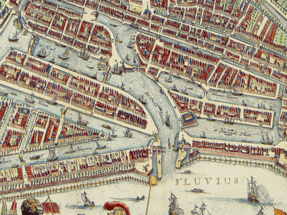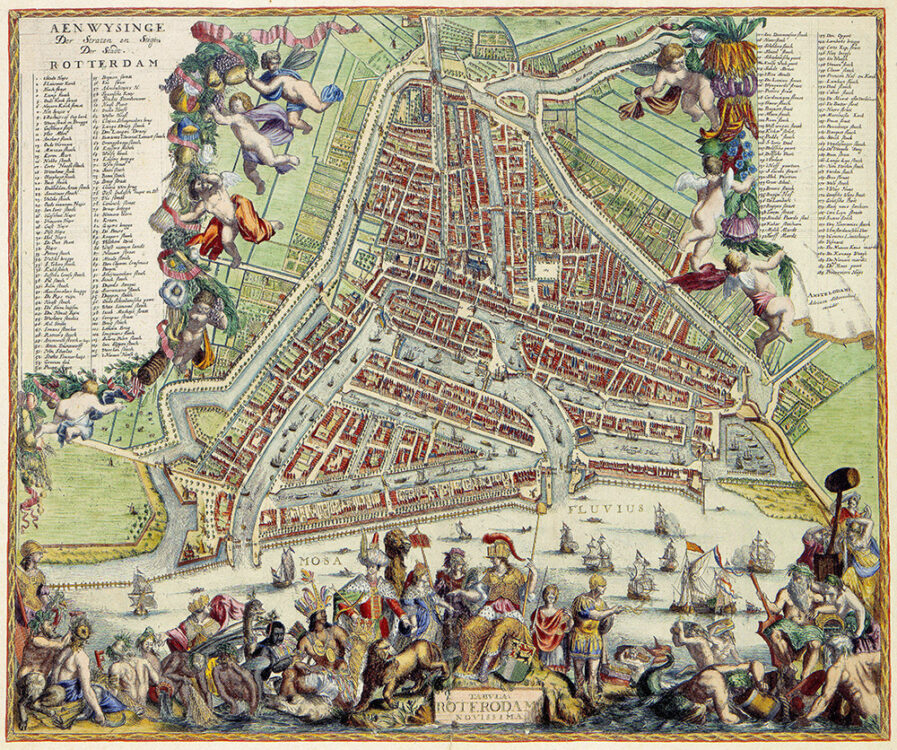 Vintage Map of Rotterdam from the Atlas Van der Hagen of The Netherlands. Exquisite detail and vibrant colours depict what was once the World’s busiest port.