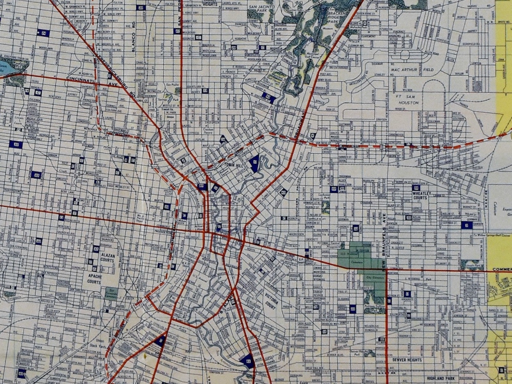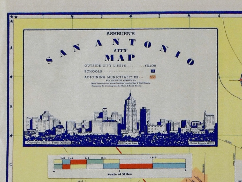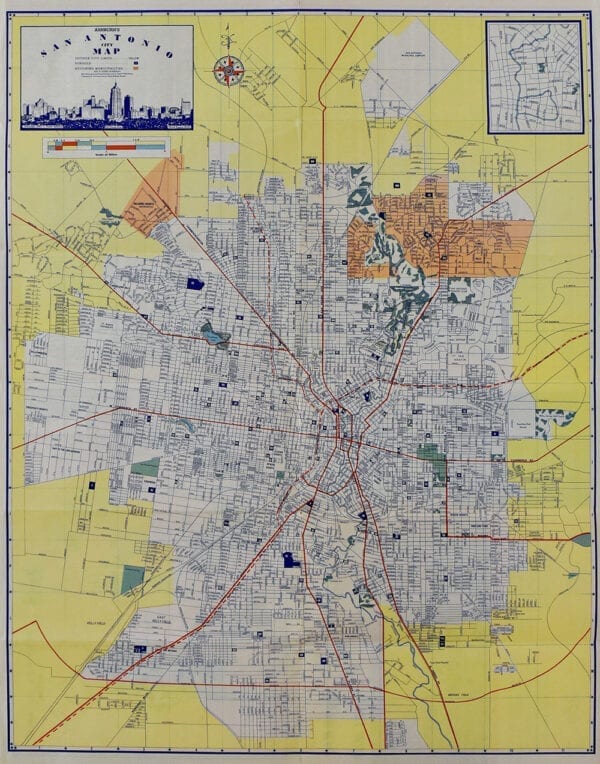 A Vintage Map of the City of San Antonio, Texas from 1950.