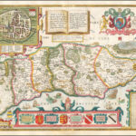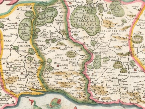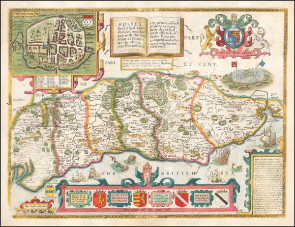 Vintage Map of Sussex from John Speed’s Theatre of the Empire of Great Britaine 1676, to this day one of the most important Atlases ever produced.