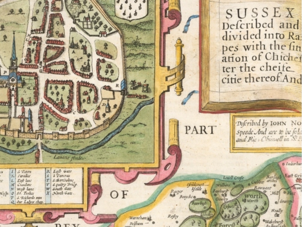 Vintage Map of Sussex from John Speed’s Theatre of the Empire of Great Britaine 1676, to this day one of the most important Atlases ever produced.