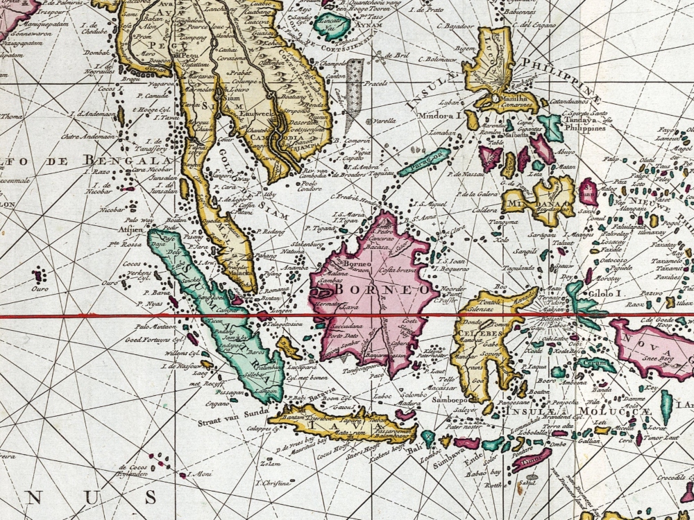 Braam and Linden’s 1724 Map of The Indian Ocean shows the Middle East, the Indian Ocean, the Far East, and much of Australia. The map features a fine depiction of the outlines of the western two-thirds of Australia, based on the discoveries of explorers working for the Dutch East India Company.