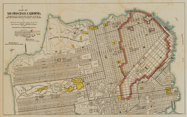 A Vintage Map depicting the extent of the San Francisco Fire in 1906 following the great earthquake of April 18th 1906.
